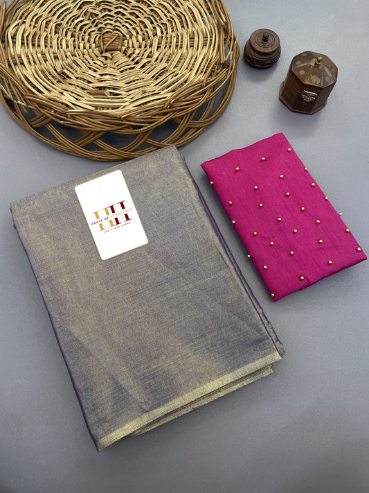 Gorgeous cotton tissue saree with pink Pearl blouse
