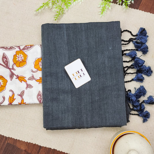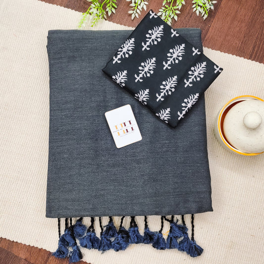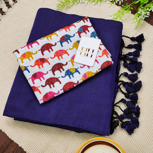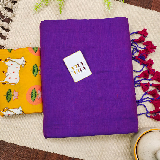Indigo Purple Cotton Saree With Kalamkari Blouse