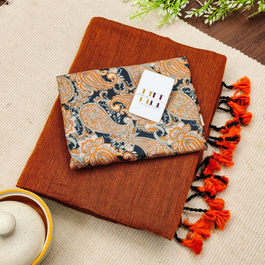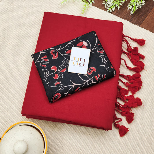 Wine Color Cotton Saree With Attractive Printed Bluse
