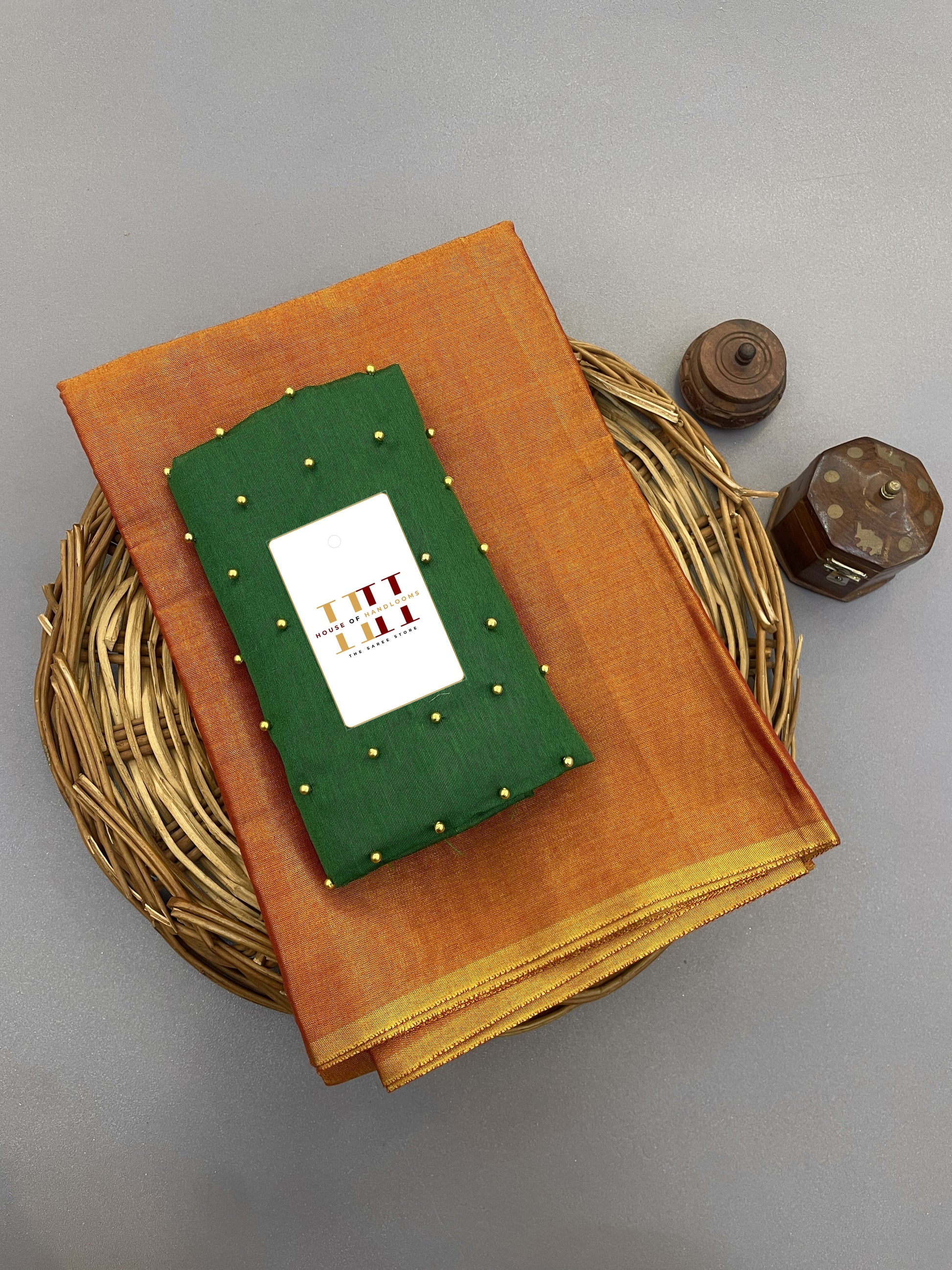 This mustard yellow cotton saree brings warmth and vibrancy with its rich, sunny hue and soft, breathable fabric. Paired with a beautiful green blouse, the striking contrast creates a perfect blend of traditional and modern style. Ideal for daytime events, festive occasions, or casual celebrations, this ensemble exudes charm and elegance. The comfortable fabric ensures ease of movement, while the colorful blouse adds a refreshing pop to the look.